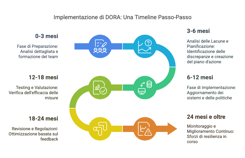 Si l’on observe la chronologie typique de mise en œuvre, comme celle représentée dans la timeline, on constate que le processus ressemble davantage à une transformation organisationnelle qu’à un projet informatique.